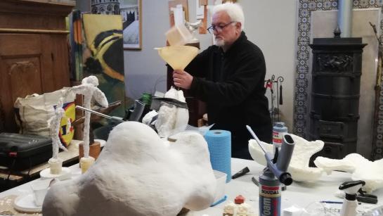 Er wordt gewerkt aan een vereenvoudiging van een veel te ingewikkeld concept dat resulteert in een installatie en een reeks toegepaste vindingen, portret naar levend model (schilderen of in klei) wassen beelden maken die door de bronsgieter worden gegoten en zelf worden gepatineerd.