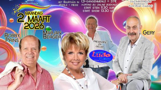 Buurtshow Festiviteit UiTPAS Vlieg Zang/dans show Prijs Basistarief: 17 EURinkom + eten: 37 EURKansentarief met UiTPAS Kempen: 3.4 EUR Koop tickets Praktische info Telefoonnummer voor Reservaties 0473447563 Praktische info E-mailadres voor reservaties info.hetbuurthuis@gmail.com Praktische info URL voor reservaties Koop tickets Kaart 51.0523294, 4.9788991 Praktische info Datum Maandag 02/03/2026 - 11:30 - 18:00 Toevoegen aan kalender Praktische info Organisator Buurtshows Praktische info Adres Het Buurthuis Zandstraat 13 2431 Veerle (Laakdal) België