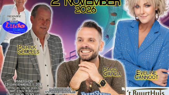 Buurtshow Festiviteit UiTPAS Vlieg Prijs Basistarief: 17 EURinkom + eten: 37 EURKansentarief met UiTPAS Kempen: 3.4 EUR Koop tickets Praktische info Telefoonnummer voor Reservaties 0473447563 Praktische info E-mailadres voor reservaties info.hetbuurthuis@gmail.com Praktische info URL voor reservaties Koop tickets Kaart 51.0523294, 4.9788991 Praktische info Datum Maandag 02/11/2026 - 11:30 - 18:00 Toevoegen aan kalender Praktische info Organisator Buurtshows Praktische info Adres Het Buurthuis Zandstraat 13 2431 Veerle (Laakdal) België
