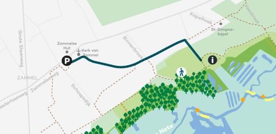 De wandeling start om 13.30 u. aan het infopunt, dat bevindt zich nabij Sint-Gerebernusstraat, ter hoogte van Paaleik richting Grote Nete in Zammel.