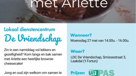 Zin in een namiddag vol lekkers en gezelligheid? Kom langs en bak samen met Arlette een heerlijke brownie-cheesecake! Jong en oud zijn welkom om samen te genieten van een smakelijke en warme namiddag, en natuurlijk iets lekkers om je vingers van af te likken!