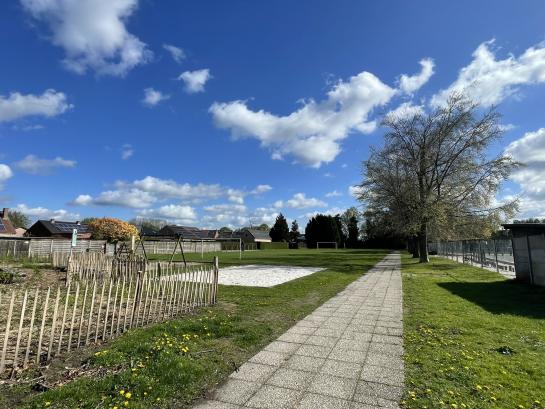 - De bestaande trage wegen achter de school en rondom het speelplein worden vernieuwd.