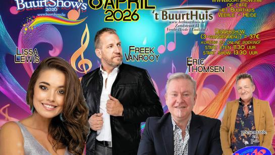 Buurtshow Festiviteit UiTPAS Vlieg Prijs Basistarief: 17 EURinkom + eten: 37 EURKansentarief met UiTPAS Kempen: 3.4 EUR Koop tickets Praktische info Telefoonnummer voor Reservaties 0473447563 Praktische info E-mailadres voor reservaties info.hetbuurthuis@gmail.com Praktische info URL voor reservaties Koop tickets Kaart 51.0523294, 4.9788991 Praktische info Datum Maandag 06/04/2026 - 11:30 - 23:59 Toevoegen aan kalender Praktische info Organisator Buurtshows Praktische info Adres Het Buurthuis Zandstraat 13 2431 Veerle (Laakdal) België
