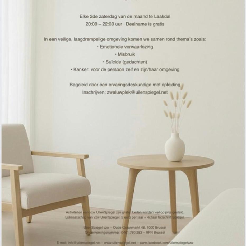 In een veilige en laagdrempelige omgeving nodigt begeleidster Cathy Dehaut je uit om samen stil te staan bij thema’s als emotionele kwetsbaarheid, verwaarlozing, misbruik, suïcide(gedachten) en kanker zowel voor wie het zelf treft als voor de omgeving.